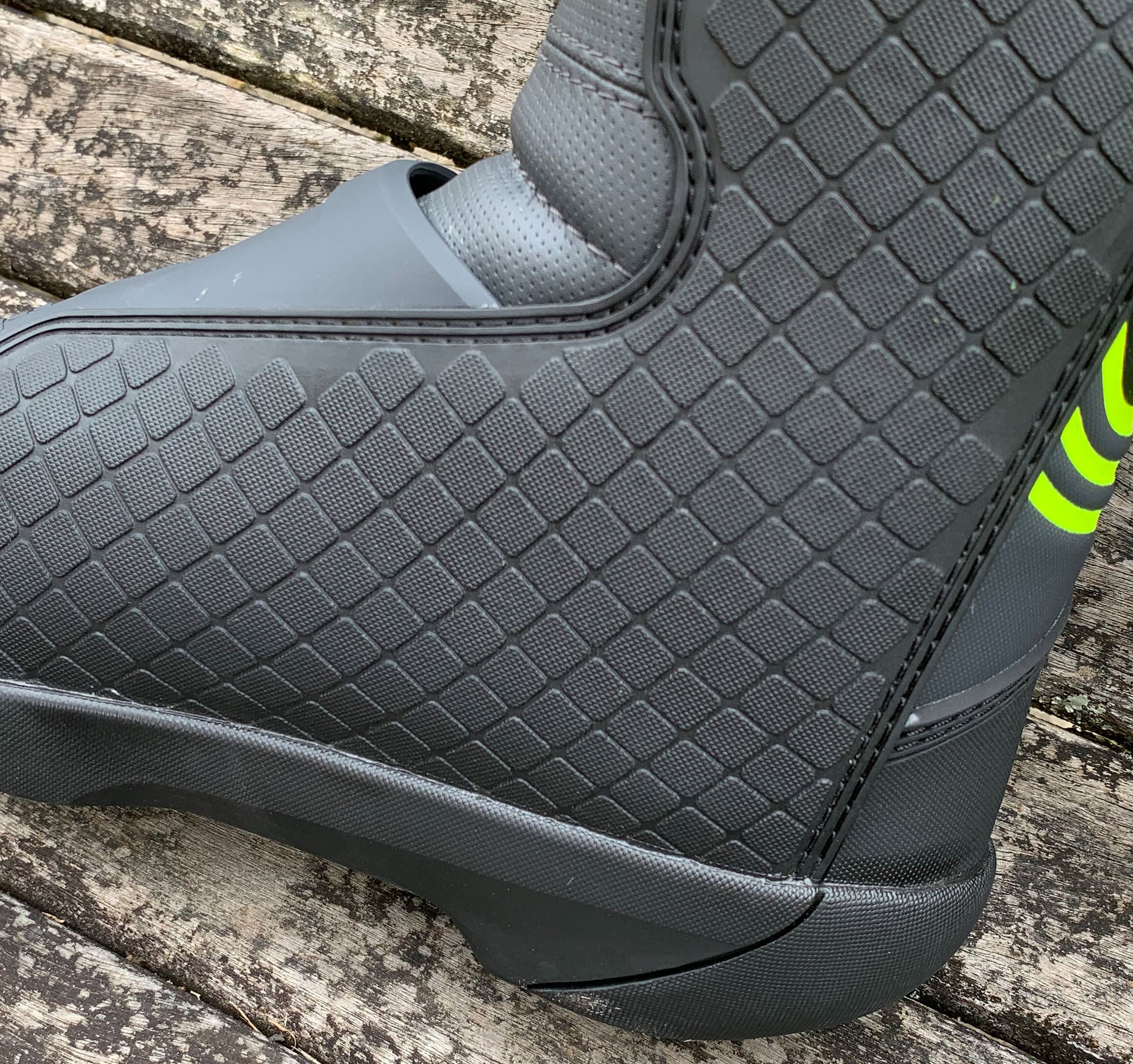 O pé esquerdo conta com reforço na parte superior para garantir maior durabilidade ao utilizar o pedal de câmbio.