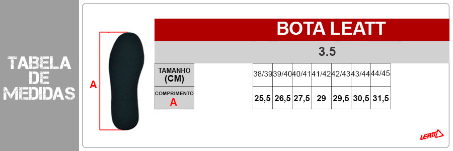 A Bota Leatt 3.5 ainda conta com todo o exterior mesclando couro sintético à placas em tpu e tpr, que oferecem proteção contra impactos diretos com mobilidade elevada, tornando sua pilotagem muito mais confortável nas movimentações sobre a moto.