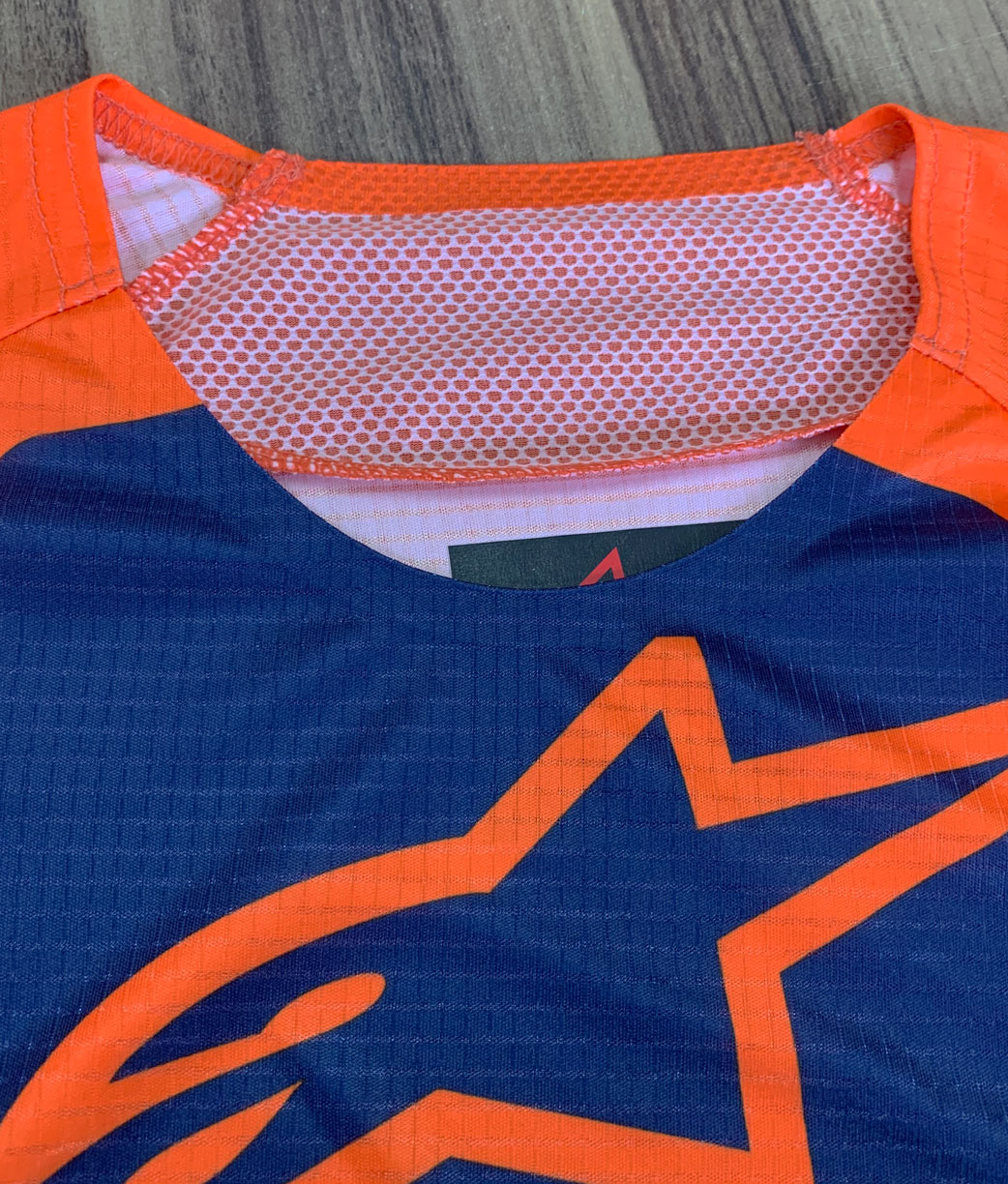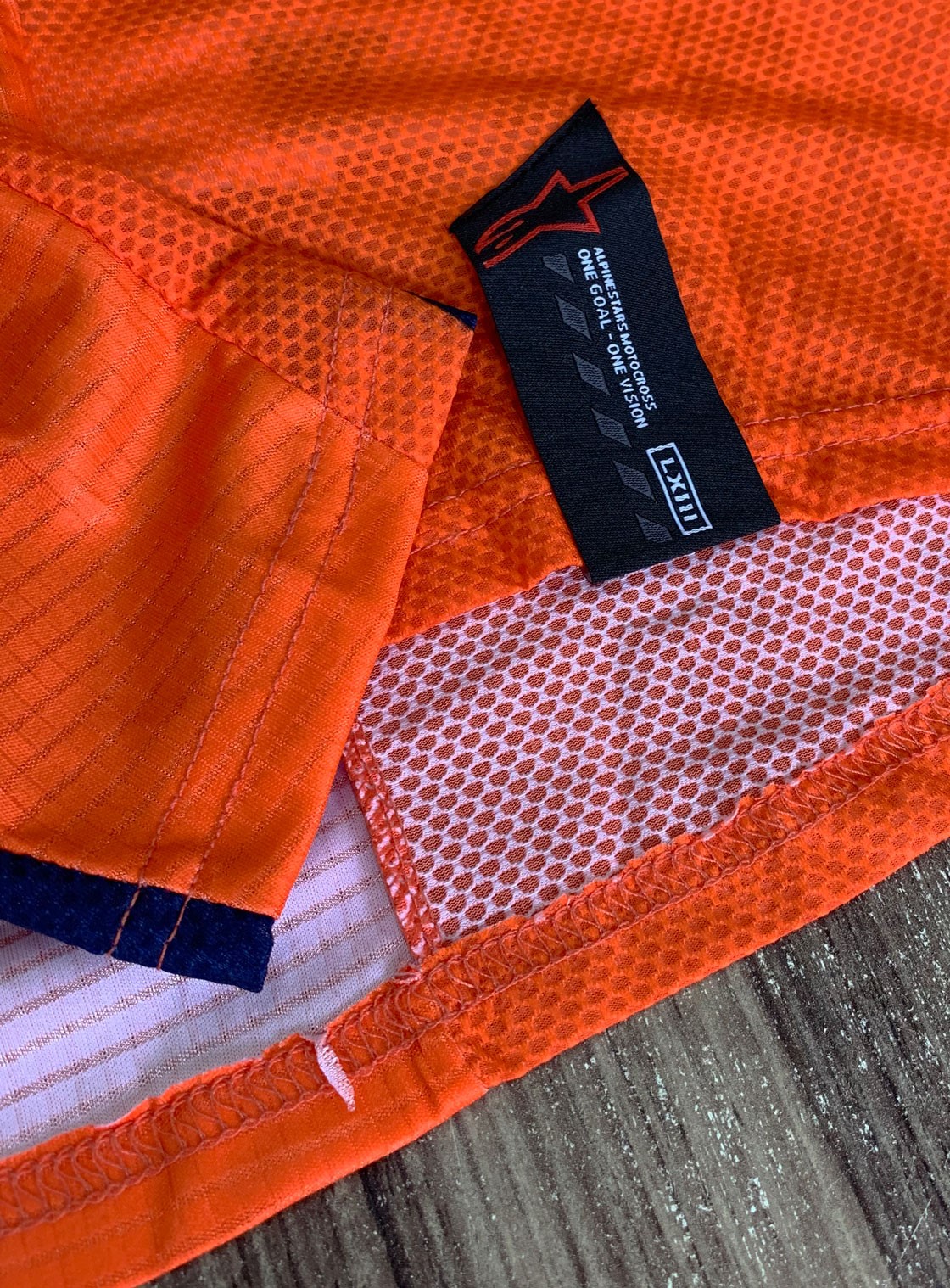 Todo o tecido tratado com controle de umidade aliado aos grafismos sublimados mantém a qualidade elevada para melhor absorção e liberação da umidade, assim como uma maior durabilidade para o uso com toda a qualidade Alpinestars.