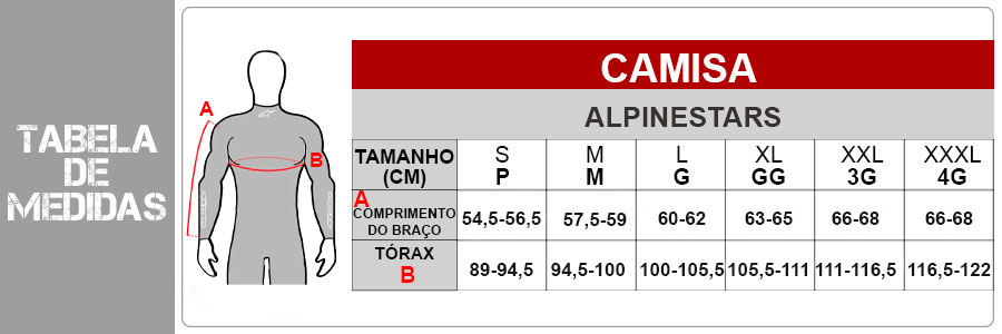 Saiba quais são as medidas da Camisa Alpinestars Techstar Factory 2022: